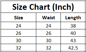 | Size | Waist | Length |