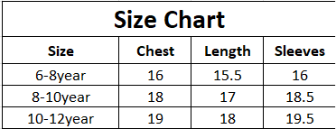 | Size | Chest | Length | Sleeves |