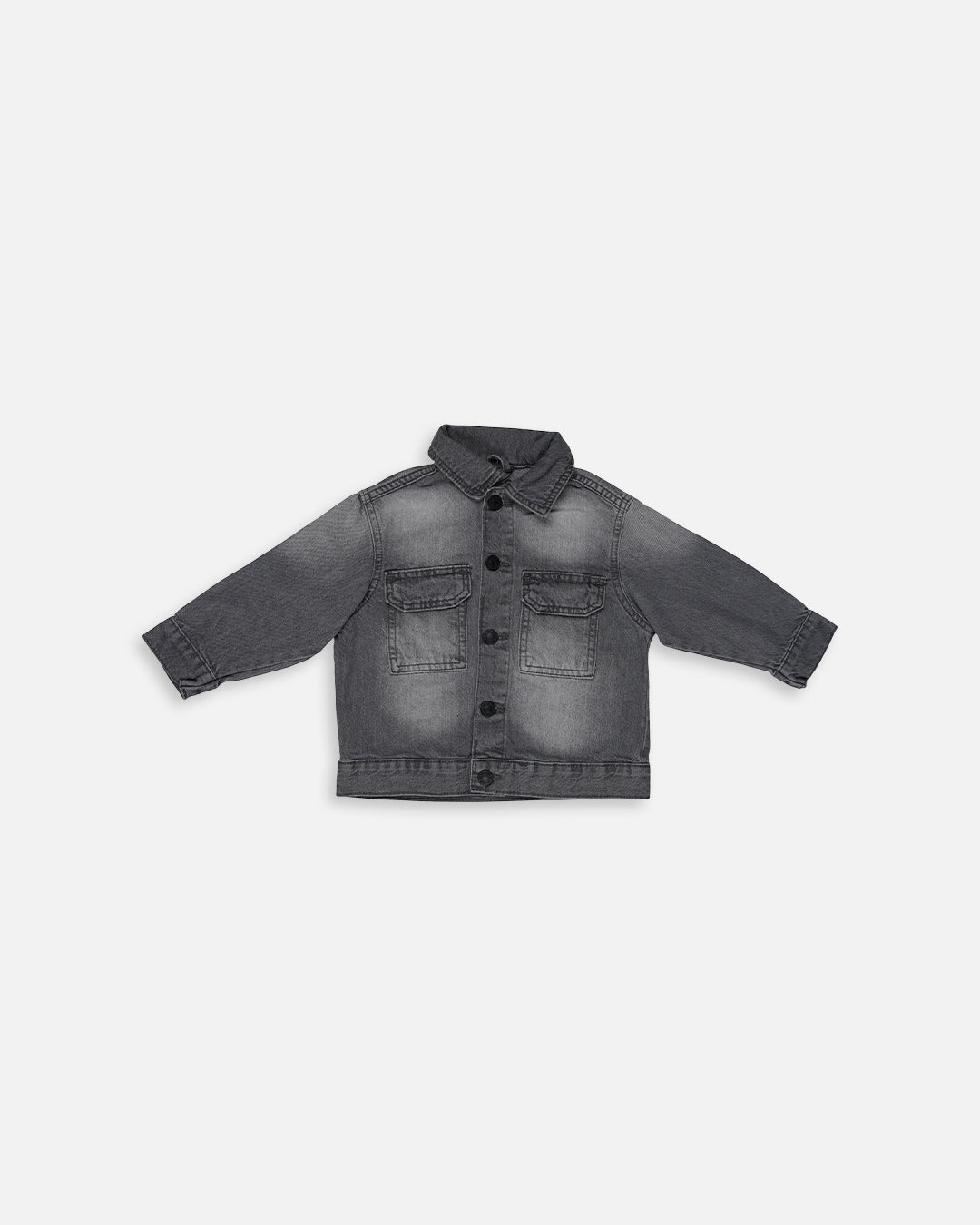 Branded Kids Unisex Washed Black Denim Jacket – Smoke Fade Edition KUJ-05