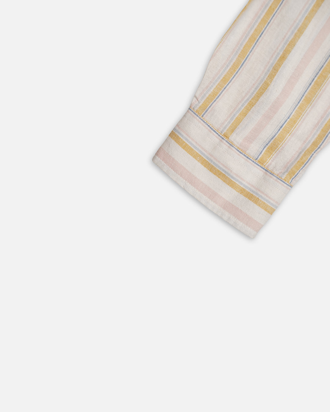 Michael Krs Branded Men’s Cream & Yellow Vertical Striped Slim Fit Casual Shirt MFS-23