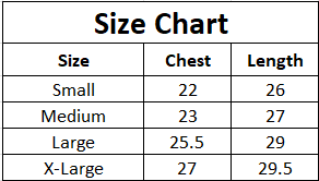 | Size | Chest | Length |