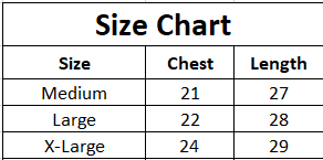| Size | Chest | Length |