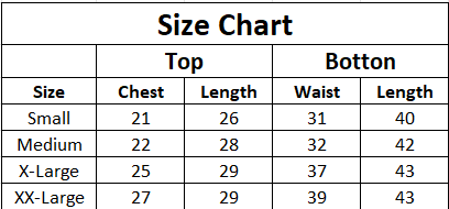 | Size | Chest | Length | Waist | Length |