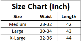 | Size | Waist | Length |