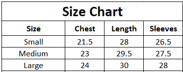 | Size | Chest | Length | Sleeves |