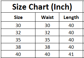 | Size | Waist | Length |